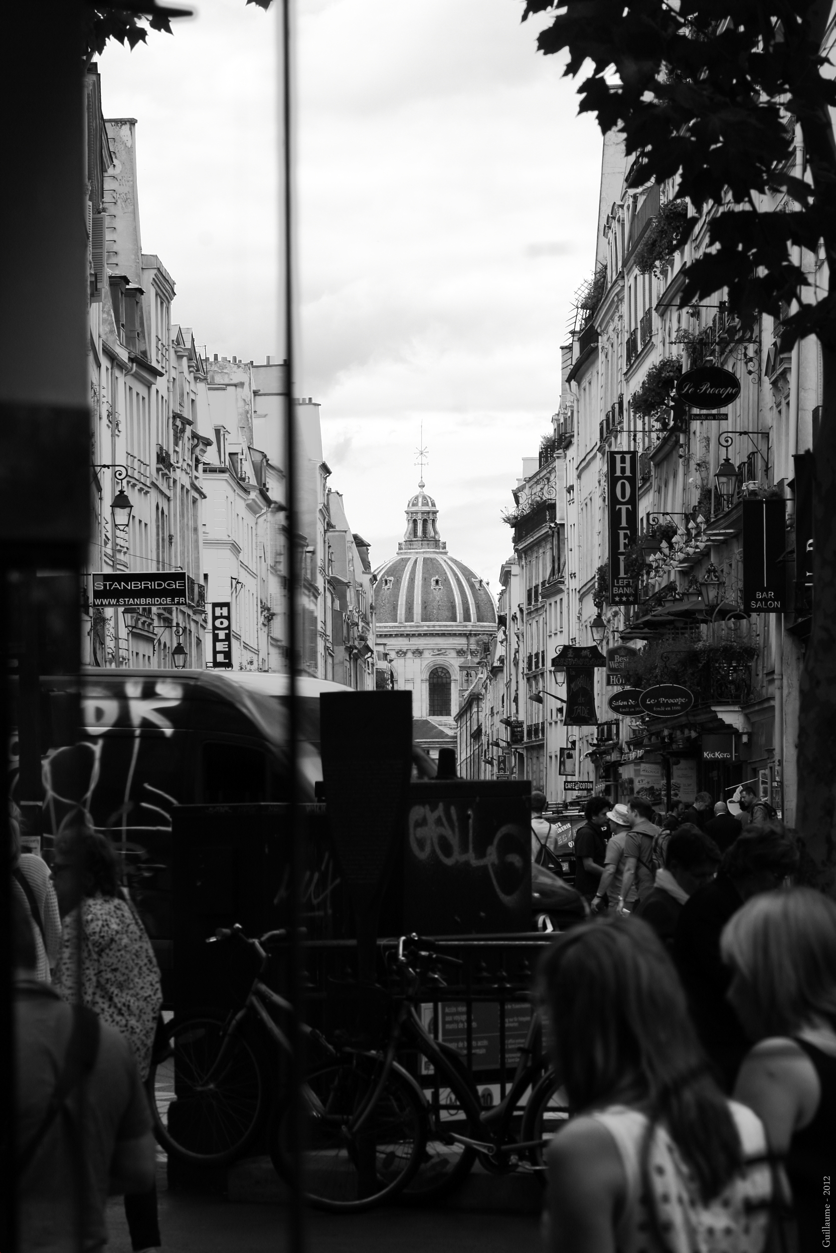 Place de l’Odéon, à travers la vitrine du cinéma Danton.