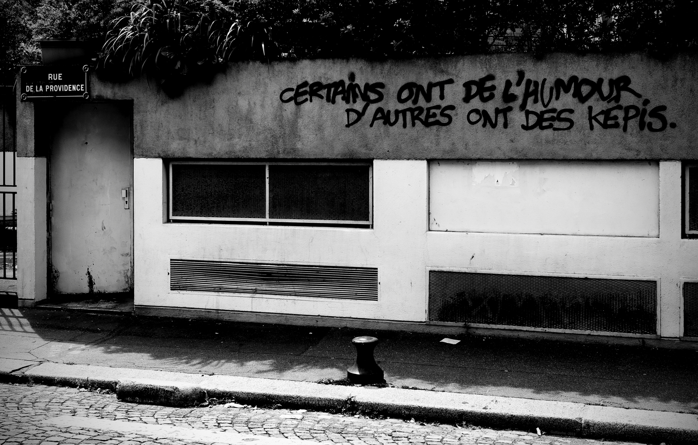 En effet si certains artistes comme Banksy ont bien compris qu’un message très graphique, astucieux permet en quelque sorte « d’accréditer » son contenu même s’il est très contestataire et à l’encontre des mœurs car le talent est souvent associé à une justesse du regard, si ce n’est de l’intelligence. Ici le tag brut sans travail de la calligraphie aura vite fait de susciter l’irritation voir le rejet d’un public qui fera l’assimilation taggeur = délinquant et qui ne pourra que mal comprendre l’essence de ce message.