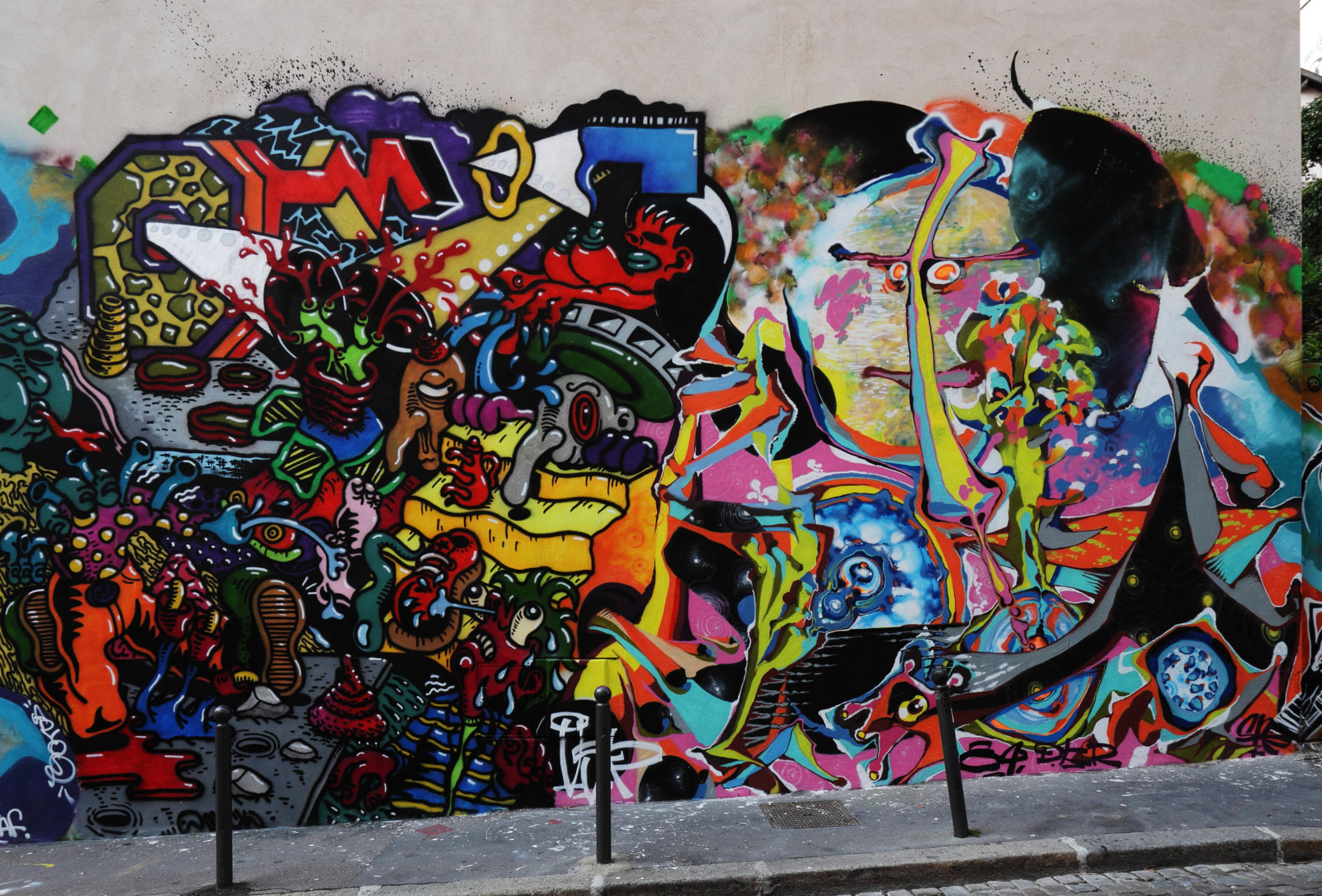 Street-art abounds on the slopes of the Croix-Rousse, as some walls offer a spectacle of patchworked paintings that can be quite graphic. Above Tables Claudiennes street.