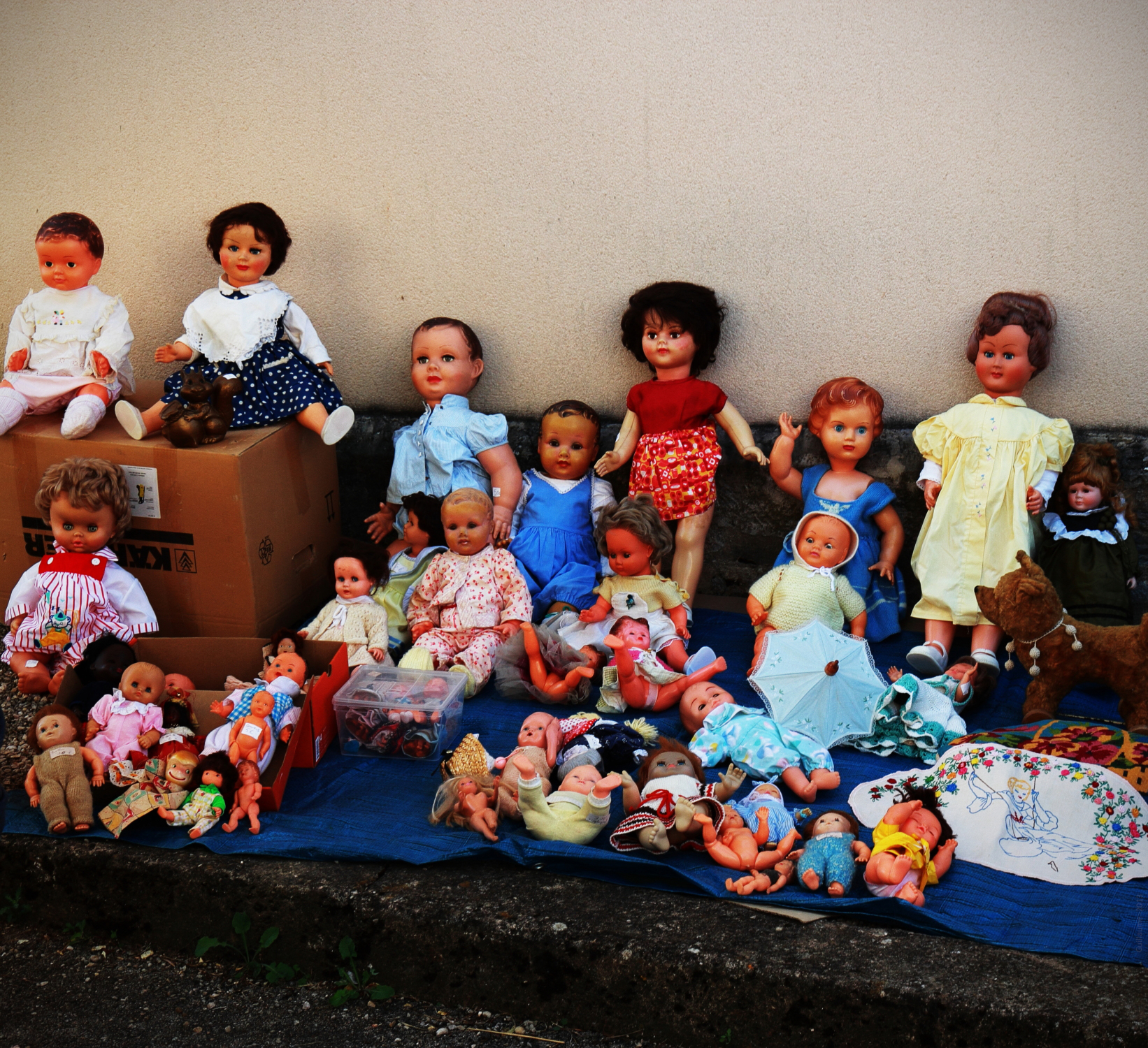 A garage sale in the village of Vriange.
