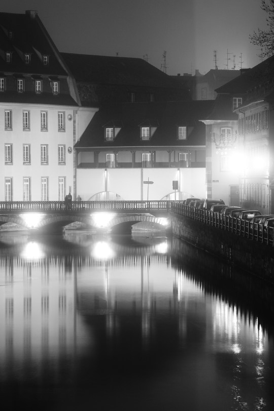 Strasbourg dans la brume, monochrome.