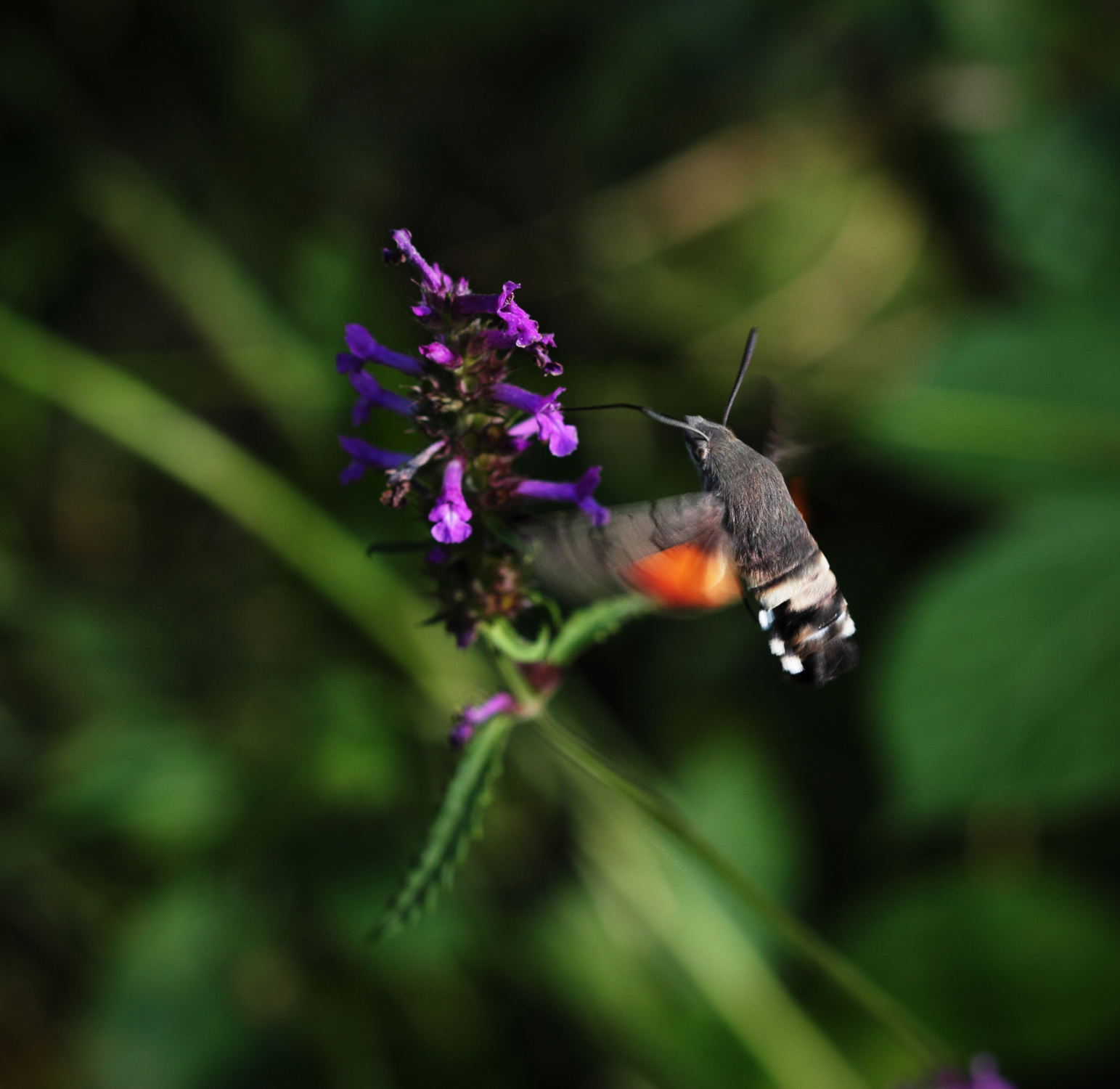 I took these pictures in the Serre forest, 2 weeks ago. I had to get some pictures of butterflies, but I did not expect such a special encounter : The Moro Sphinx or Sphinx-hummingbird. This insect feed himself in flight, he unfolds his trunk and hovers before his meal, which allows full flight shots oin a much easier way than other insects.