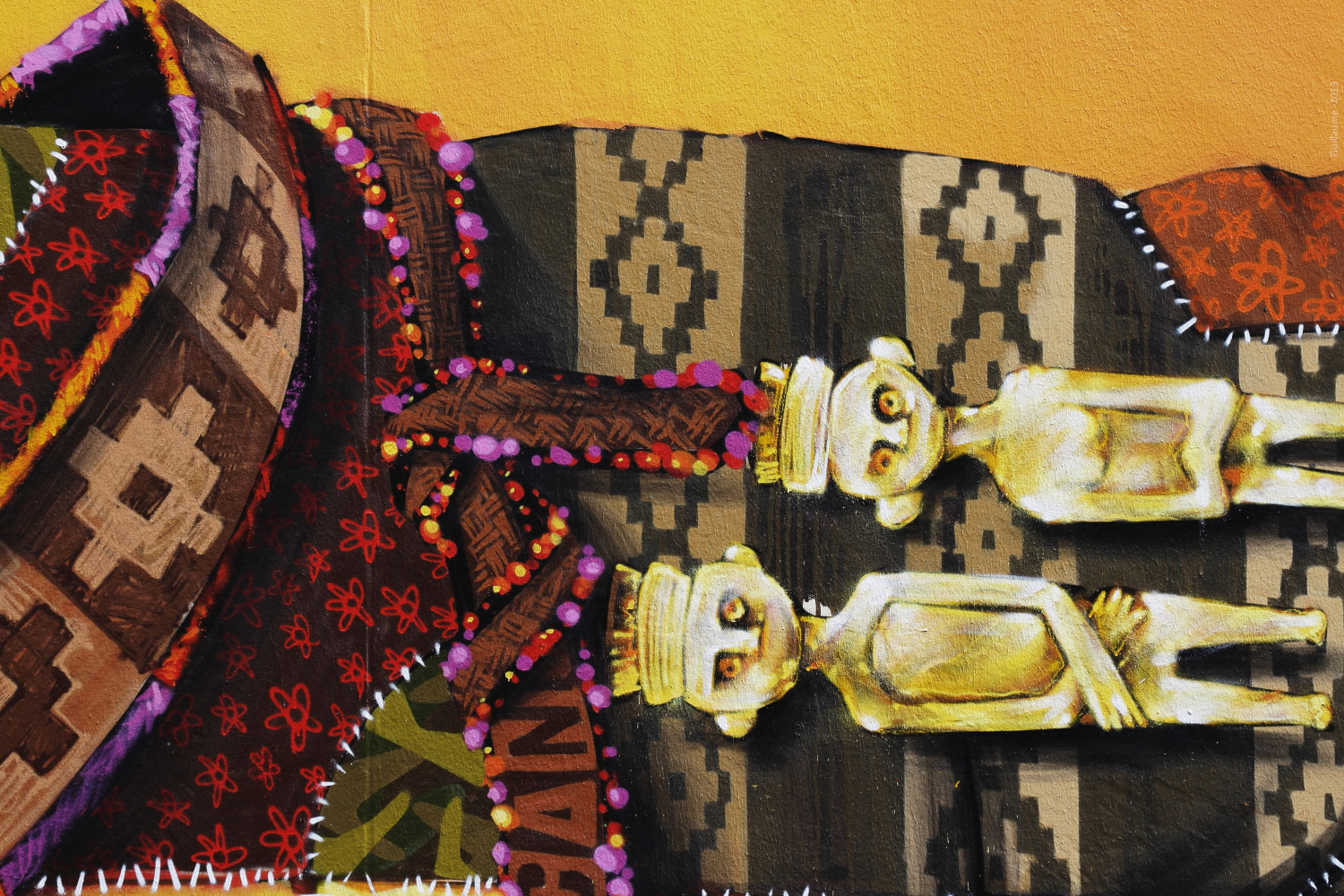 Chilean artist, Inti has painted two large format graffs in the 13th (https://street-art-scenik.com/2012/11/08/art2rue-vii/ – https://street-art-scenik.com/ 2013/06/28/art2rue-lxxxiii-inti-galerie-itinerrance /). His puppets and his colorful style have earned him international recognition and a place in art galleries.
